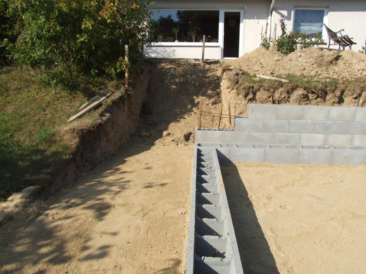 und Mauer wurden Schalungssteine gesetzt.